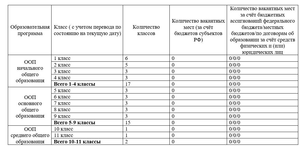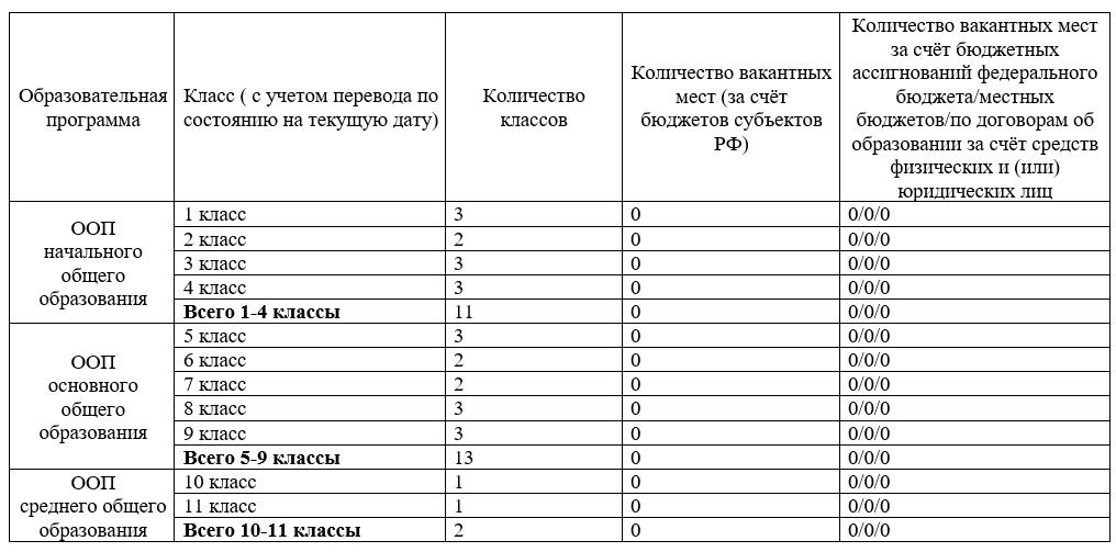Вакантные места для приема (перевода) обучающихся
